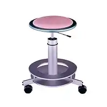 The Sun-Sentinel described the Saturn Stool as "a pink planet seat surrounded by a pale green ring on an aluminum hydraulic lift ..."[35] The anodized aluminum and lacquered wood stool[36] became synonymous with Jackson's work[37] and, a decade later, it was used in an ad for Absolut Vodka titled "Absolut Jackson".[38]