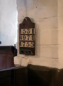 A small area of very old masonry that survives where the two aisles of All Saints' Church meet, showing Norman moulding and evidence an early 12th century origin for the chapel.