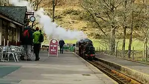 Dalegarth railway station is the easterly terminus of the 15-inch gauge Ravenglass and Eskdale Railway in Cumbria, England.[1] It has a café and shop for passengers, along with a run-round loop, turntable and siding for trains. It is located next to the Whillan Beck, a tributary of the River Esk flowing from the isolated Burnmoor Tarn.