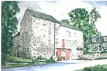 One feature of the mill is the relatively small number of windows. This may be purely practical, however avoidance of paying too high a 'window tax' may have been a consideration. Window tax was first levied in England in 1696 to offset the expenses of making up the gold and silver deficiency in the re-coinage of William III reign caused by clipping and filing of coins. It was set at two shillings for small tenements, six shillings for buildings with up to ten windows and ten shillings for those with twenty windows. Cottages were exempt.[1] It was based on the number of windows in a house and large mansions often had many existing windows blocked up, such as a whole side of Loudoun Castle, in Ayrshire, Scotland. It was repealed in 1851 and replaced by a tax on inhabited houses.[2]