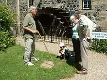 Thirlage was the feudal law by which the laird (lord) could force all those farmers living on his lands to bring their grain to his mill to be ground. Additionally they had to carry out repairs on the mill, maintain the lade and weir as well as conveying new millstones to the site. The width of some of the first roads was determined by the requirements of at least two people on either side of a millstone with a wooden axle called a 'mill-wand'.[3][5]