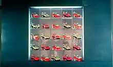 By 1967, Puzzovio had created Dalila doble Plataforma[16]; in this fusion of art and fashion, she created a total of 40 women's platform shoes.[17] Puzzovio aimed to analyze how women became empowered through wearable accessories that added vibrancy and height to their physique; she predicted that women would not only feel empowered but would be able to transcend from the 1960s all the way to the 2000s.[18] The platform shoes were evenly spread out in a glass display made up of distinct cubicles, each containing a lonesome pair. At first, their exhibition was exclusive to art galleries, such as the Centro de Arte Visuales del Instituto Di Tella, but they were eventually put on display behind the shopping windows of traditional shoe stores such as Grimoldi.[15] Puzzovio reduplicated this object and offered it to these shoe stores for commercial use, ultimately producing a massive artwork[19] that extended from the Di Tella to the commercial streets of Argentina. The following year, her artwork was honored through the Premio Nacional de Di Tella, which would make her a second-time winner of such award.[18] She additionally used this artwork as the basis of El Deslumbre, an installation and performance that was showcased at arteBA, Buenos Aires' annual contemporary art fair, in 2011. This exhibition recreated the environment and atmosphere of shoe stores that originally carried her "arty-shoes". The general public that visited contributed to the mobilization of the artwork by trying on pairs of shoes and modeling them in a catwalk that was installed specifically for the event.[20]