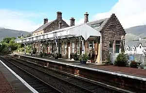Dalmally railway station is a railway station serving the village of Dalmally, near Loch Awe in Scotland. This station is on the Oban branch of the West Highland Line, originally part of the Callander and Oban Railway. It is sited 46 miles 76 chains (75.6 km) from Callander via Glen Ogle, between Tyndrum Lower and Loch Awe.[5] ScotRail manage the station and operate all services.