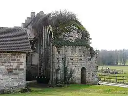In the 17th century, the remains of the abbey (the monks' building, the chapter house and the two chapels of the right-hand side of the transept) were integrated into the northern side of the newly-established dwellings.[6]