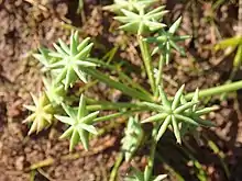 Damasonium is a genus of six species of flowering plants in the family Alismataceae, commonly known as starfruit and by the older name thrumwort. The genus has a subcosmopolitan but very patchy distribution.[1][2][3][4]