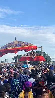The Damba festival is the largest festival in Ghana, celebrated by the peoples of the Northern, Savanna, North East, Upper East and Upper West Regions of Ghana.[1] In recent times, Damba has become a multinational festival, attracting visitors from all over the world. The festival is annually celebrated in Germany, USA, and UK.[2][3][4]