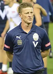 Damien Patrick Hardwick (born 18 August 1972) is a current Australian rules football coach and former player who is the head coach of the Gold Coast Suns in the Australian Football League.[1] He is the former senior coach of the Richmond Football Club, serving in the role between 2010 and mid-2023 inclusive and winning three premierships.[2]