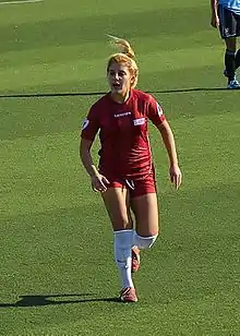 Damla Demirdön was called up to the Turkey women's U-19 national team, and debuted at the friendly match against Macedonia on 22 January 2006.[11] She participated at the UEFA Women's Under-19 Championship qualification round matches in 2007 and 2008.[12][13] She capped 15 times in total for the junior women's national team until September 2008.[1]