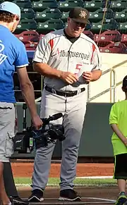 In 2008, he managed the Bakersfield Blaze of the California League. In 2009–13 he was the manager of the Ogden Raptors. He was named the manager of the Albuquerque Isotopes of the Pacific Coast League for 2014. The Dodgers changed AAA affiliates in 2015 and he became the manager of the Oklahoma City Dodgers.[5] He led the AAA Dodgers to a division title and was selected as PCL Manager of the Year.[6] Despite that, the Dodgers chose not to renew his contract at the end of the season.[7] On December 12, 2016, it was announced that Berryhill would serve as manager for Atlanta's AAA affiliate, the Gwinnett Braves.