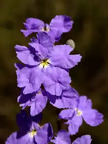 Dampiera juncea commonly known as rush-like dampiera,[2] is a flowering plant in the family Goodeniaceae and is endemic to Western Australia. It is a small, upright perennial with blue-purple flowers.