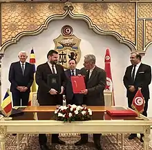 In 2019, he was part of the European Union Election Observation Mission in Tunisia (EU EOM)[54] During his mandate, he also played an active role in the Group of Francophone Ambassadors in Tunisia (GAF)[55] especially in the perspective of the 2021 Francophonie Summit in Djerba.[56] During 2017–2021, numerous visits to Tunisia took place not only by Romanian officials but also by political,[57][58] cultural,[59] sports[60] and academic personalities from Romania.[61]