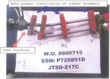 During the teardown of both engines, investigators discovered several fractures in the fuel lines of the left engine. The fuel feeder lines had fractured flush, exhibiting shear lips. The primary fuel manifold had bent downwards. The secondary fuel manifold had twisted. Its fuel transfer tube had nearly blocked the flow of the fuel, reducing the diameter of the fuel nozzle. On the right engine, the secondary fuel manifold had collapsed and there were fractures on the primary fuel manifold. The fuel lines of both engines had also fractured and bent on its fittings, the No.5 and No.6 fittings.[3]: 37