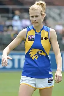 - ↑ Black, Sarah (10 April 2019). "Eagles pinch star Dockers mid, Dees and Freo re-sign 18 each". womens.afl. Retrieved 11 April 2019.