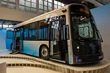 Dancer Bus is an electric bus designed and produced by Vėjo Projektai UAB in Klaipėda, Lithuania. The electric bus is manufactured of composite materials, including recycled PET bottles. The vehicle is 12 metres (39 ft) long, equipped ZF electric drive. In-wheel traction motors are currently in development.[1] Fully charged bus can ride a distance of up to 90 kilometres (56 mi).[2] The lithium-titanate battery fully charges in less than 10 minutes. The capacity is 93 passengers with 32 seats and one space for a wheelchair.[3] The bus is certified in the European Union.[4] In April 2020, two buses were purchased by the Klaipėda City Municipality to be used for public transportation.[3]