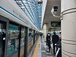 Danggogae Station is a station on Line 4 of the Seoul Metropolitan Subway network.[2] It was the northern terminus of Line 4, until 19 March 2022, when the line was extended to Jinjeop. It is an elevated station. The name of the subway station comes from its local name. Regional names refer to the pass that travelers carried over because of wild animals.[4]