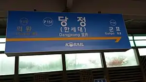 - ↑ "당정역" (in Korean). KRIC. Retrieved 2015-10-30.