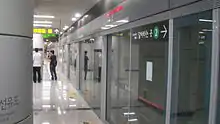 Seoul Subway Line 2 has two-sided relative platforms, Seoul Subway Line 9 has two island platforms, and both platforms have screen doors.