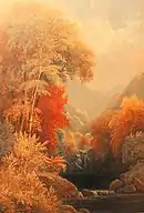He sketched and painted in the northeastern United States,[15] including Maine, the Hudson River Valley, and Connecticut.[16] He also continued to work in adjacent Canadian provinces.[17][18] Grose was active as a painter in the Rocky Mountains area from the 1860s to the 1880s.[19] Other American locations included Florida and the Grand Canyon.[13] Some of his works deriving from his travels to India were highly rated by contemporaries,[13] and his painting Lalla Rookh was particularly celebrated.[13][20] Grose was evidently successful as most of his canvases were sold before he completed them.[13]
