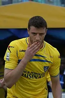 On 30 June 2013, Ciofani signed for Frosinone Calcio in co-ownership deal, swapped with Leandro Campagna.[13] Both 50% registration rights of the players were tagged for €600,000.[14] On 24 January 2014, Frosinone signed Ciofani outright.[15] He scored his first goal in Serie A for the club on 28 October 2015 in a 2–1 win over Carpi.