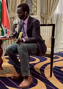 Danis is half Dinka and half Nuer.[1] He was born in what is now South Sudan but fled to Kenya at the age of seven due to the Second Sudanese Civil War. He settled at the Kakuma Refugee Camp in Kenya. In 2000, at the age of 14, Danis helped found the Woyee Film and Theatre Industry to perform plays to keep busy at the camp. The group wrote and performed plays that on subjects that spoke to the refugees like HIV, domestic violence and women's rights. It attracted attention from non-governmental organizations, which hired Woyee to make short educational films, and Danis learned filmmaking from FilmAid International. After the war ended in 2005, the collective continued to grow and acquired an office in Juba.[2] Danis and others devoted the money they made from making films for UN agencies into buying a camera and editing software. The Woyee group rotated the main roles of director, cameraman, actors, and crew among different members.[3]