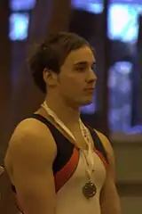 Daniel Ryan Keatings (born 4 January 1990[1]) is a retired British artistic gymnast representing Scotland and Great Britain. Both an all-around gymnast and a specialist pommel horse worker, Keatings was the first male British gymnast to medal at the all-around competition at the World Championships, and the first male British gymnast to become a European champion, winning on pommel horse, his signature piece, in 2010 in Birmingham and again in 2013 in Moscow. In 2014, he won gold at the Commonwealth Games, again in pommel horse, for Scotland. With Louis Smith, Max Whitlock and Joe Fraser of England and Great Britain, and Rhys McClenaghan of Northern Ireland and Ireland, Keatings formed part of a golden generation of home nations pommel horse workers who dominated the apparatus at global, continental and Commonwealth Games level from 2010 onwards.