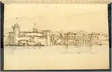 1 December 1857 Sends Trelawny a woodcut of the Villa Magni, which contains a sketch of a boat, which Trelawny incorrectly identifies as Shelley's yacht, the Don Juan.[35]