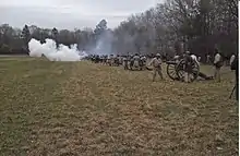 Despite being from the abolitionist stronghold of Massachusetts, Ruggles married a woman from Virginia and held Confederate beliefs.[2] With the outbreak of the Civil War, Ruggles resigned his commission in the U.S. Army on May 7, 1861[3] Appointed a Brigadier General of Militia and Colonel in the Provisional Army of Virginia he was given command of the Aquia District in May 1861.[4] There Ruggles set up shore batteries to block the Chesapeake Bay. After exchanging fire with the Union Navy Ruggles' troops resisted a landing party and prevented a Union beachhead in the Battle of Mathias Point.