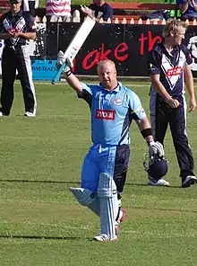 ![]() Daniel Smith acknowledges the crowd after making a century against Victoria in Ryobi One-Day Cup, 2011. | |||||||||||||||||||||||||||||