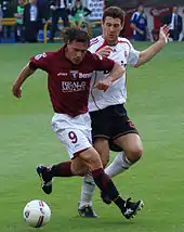 After the 2006 World Cup, he was re-called for the first time under new manager Roberto Donadoni, ahead of the UEFA Euro 2008 qualifier against Scotland, a match scheduled for 28 March 2007.[14] However, he had to withdraw due to injury.[15] In October and November 2007, he was called up again.[16][17] He played in a 2–0 friendly win against future 2010 FIFA World Cup hosts South Africa with an experimental Italy squad,[18] and also came on as a substitute for Fabio Cannavaro in a 3–1 home win in a Euro 2008 qualifier against the Faroe Islands.[19] He was not selected for Euro 2008.[20]