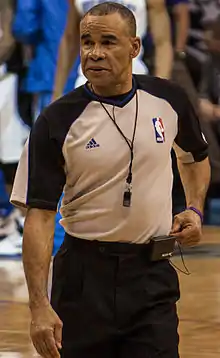 Crawford grew up in East Garfield Park on the West Side of Chicago. He attended Ryerson Elementary School and was a basketball star at the now defunct Cregier High School.[2] In 1976, Crawford graduated from Northeastern Illinois University.[3] As a guard, Crawford played hoops for NEIU, averaging 18 points as a sophomore. He majored in physical education, with hopes of becoming a gym teacher. Officiating was something he did on the side, for rec games and intramurals, to make a little extra cash while he was a student-teacher. He began to take it seriously in the late 1970s. He started with high schools, then junior college, and then Division 1 college basketball, where he officiated games in the Missouri Valley Conference.[2] Crawford's first NBA game came in the 1984–85 season. In 2016, Crawford officiated his third NBA All-Star Game.[4] In a 2016 survey conducted by the LA Times, NBA players voted on who they believed to be the best referee. Crawford received the most votes with 30. During an NBA game in 2013 Crawford was accidentally punched below the belt by Carlos Boozer.[5][6]