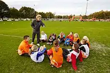 Daphne Helena Koster (born 13 March 1981) is a retired Dutch football player, who played as a defender for Ajax in the Vrouwen Eredivisie.[2] She also played in the American Women's Professional Soccer (WPS) for Sky Blue FC.[3] A powerful centre back, she was the captain of both the Netherlands women's national football team and Ajax.[4][5]
