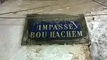 Metallic plaque indicating the Bou Hachem dead end