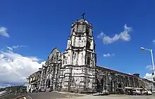 The present church of Daraga was built under the Franciscan priests in 1773.[3] Built at the time that Daraga was a visita of Cagsawa, the church was erected atop a hill in barangay Santa Maria overlooking the Mayon Volcano.[4][5] When the Mayon Volcano erupted on February 1, 1814, the residents of Cagsawa transferred to Daraga after the destruction of their church.[6] It was a common belief, however, that the church of Daraga was built after the eruption of Mayon and that it replaced the church of Cagsawa.[7] The church was consecrated to Our Lady of the Gate in 1854.[4]