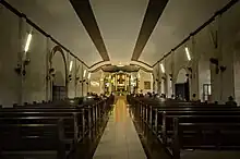 The church was heavily damaged by joint American and Filipino military bombers during the Second World War in 1945, and was hastily renovated after the war using a mix of Renaissance Gothic and Mexican Baroque styles.[4][8] The church was redesigned to follow the norms of the Vatican II council from 1971 to 1973.[3][4] In 1991, the altar was returned to its original position.[8] The church is still undergoing preservation and rehabilitation measures to prevent deterioration.[9]