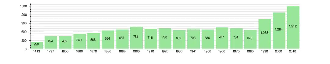 Dardagny has a population (as of December 2020) of 1,855.[7] As of 2008, 26.0% of the population are resident foreign nationals.[8] Over the last 10 years (1999–2009 ) the population has changed at a rate of 5.4%. It has changed at a rate of -3.9% due to migration and at a rate of 8.6% due to births and deaths.[9]