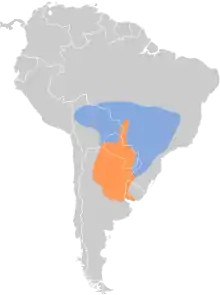 Its natural habitats are dry savanna and subtropical or tropical seasonally wet or flooded lowland grassland. It is becoming rare due to habitat loss.