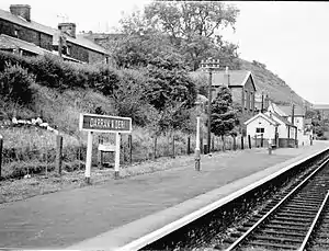 Darran and Deri railway station was situated on the Brecon and Merthyr Junction Railway, serving the adjoining village of Deri and the nearby Darran Colliery. It was located at 20 miles 08 chains from Newport. The line was built and owned partly by the Rhymney Railway and partly by the Brecon and Merthyr Railway, the boundary between the two companies lying a short distance north of Darran and Deri. The line passed to the Great Western Railway in 1923 and to British Railways (Western Region) in 1948.[1]