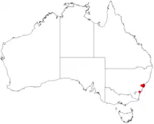 This darwinia grows in forest and scrub near the top of sandstone gullies on the central coast north of Sydney.[2][3][4]