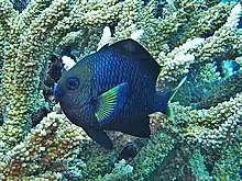 Dascyllus flavicaudus, common name yellowtail dascyllus, is a Damselfish belonging to the family Pomacentridae.