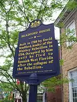 The David Bradford House is a historic house museum at 175 South Main Street in Washington, Pennsylvania. Completed in 1788, it was the home of David Bradford, a leader of the Whiskey Rebellion. It has both architectural and historic importance, and was designated a National Historic Landmark in 1983.[2] It is open weekly between April and November, or by appointment.