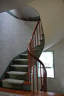 The Compton house also has a two-story rear ell, for which the periodization is less clear-cut. One theory is that the middle portion of the ell was a one-story kitchen built at the same time as the more finished original house, and the ell was later expanded upward and backward. In the attic, an exposed fascia board for the front portion of the house indicates that at least the second story of the rear ell was a later building phase. Yet there are signs that the original ell could be an earlier, 18th-century structure that was attached to the 1818 house. The size and form of the middle section, which displays exposed beaded joists, resembles some 18th-century one-room dwellings in Cape May County. The rear portion of the ell was clearly a later addition, as revealed by the split rear stairs and a second set of carpenters marks in the attic.[2]
