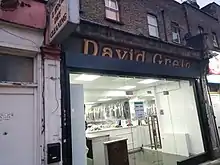 The David Greig chain is considered to have been established in 1870, when the wife of a Hornsey cabinet maker of Scots birth, Mary Greig opened a small provisions shop at 32 High Street, Hornsey.[2][3][4] By 1881 her son David Greig had joined her in the business and described himself as a 'provision dealer' in the census of that year.[2] The business thrived and wishing to expand beyond Hornsey, Greig opened his first shop at 54-58 Atlantic Road, Brixton in 1888,[2] which he and his wife, Hannah Susan Deacock lived above.[5] Around 1890 a second shop was opened at nearby Loughborough Junction, near Brixton. This was probably the shop at 232 Coldharbour Lane where a wooden 'David Greig' fascia with 'Brilliant cut' gilded lettering in the distinctive serif typeface of the chain, was uncovered in 2020.[6] In 1895, David Greig was accused of selling margarine as butter.[7]