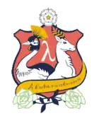 The college shield was one of 22 entries to a competition to design it. The scroll has the phrase 'A luta continua', which translates as 'the struggle continues'. It has connections to David Kato from its use by his supporters at his funeral, but is not the motto of the college.[9]