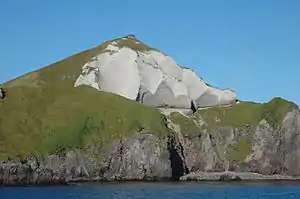 Davidof Island (Qanan-tanax̂[1] in Aleut) is an island in the Rat Islands archipelago of the Western Aleutian Islands, Alaska, United States. Davidof Island is irregular in shape with a north–south length of 2 miles and a greatest width of 0.7 mile. The high point in the south part is 1,074 feet, and the summit in the north part is 922 feet high. Rocks on the north part of the island are hydrothermally altered. The projecting E point of the island is marked by a prominent cone-shaped grayish-tan summit.[2]