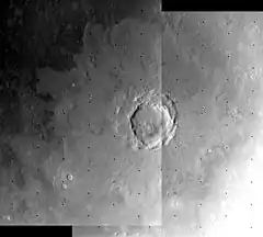 Viking Orbiter 2 mosaic showing the crater and its extensive ejecta