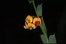 Daviesia quadrilatera, commonly known as buggery bush,[2] is a species of flowering plant in the family Fabaceae and is endemic to the south-west of Western Australia. It is a robust, erect, glabrous shrub with angular branchlets, vertically flattened, sharply-pointed quadrilateral or triangular phyllodes with a sharp point on the end, and yellow to orange and red flowers.