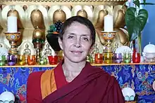 Following her Buddhist monastic conversion, Davina reformed her 18th-century home in Haims into a monastic centre and called it the Chökor Ling in 2007, with the objective of raising funds for helping poor children of Tibet and Tibetan families residing in India.[2] She started teaching the precepts of Tibetan Buddhism, meditation, and yoga to monks, students, and lay people, holding workshops and seminars. She is supported in this activity by three other nuns. She also built a stupa in the precincts of her 2 hectares (4.9 acres) estate.[1] During this time, she wrote the book Le bonheur selon Bouddha (The Happiness according to Buddha) on Buddhist teachings.[5]