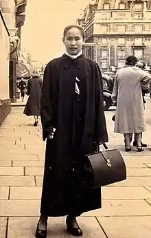 Kyan worked as a junior assistant teacher at the government high school in Thandwe where she passed the high school final exam in 1935. She later served as an upper division clerk at the post offices in Thandwe and Sittwe.[6]