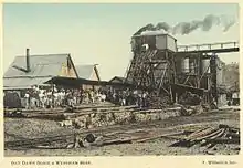 The original Day Dawn P.C. was taken up by a group of German miners and was the first to give Charters Towers a good start. The ground was first worked in 1874 and was for many years a "stringer". In the hands of Frederick Pfeiffer and his partners Christian and Levers, the wealth of the Day Dawn Reef at a depth of 200 feet (61 m) was found in 1878. All at once the stone came in 4 feet (1.2 m) thick of 3 ounces (85 g) stuff. The reef widened as far as 20 feet (6.1 m) and occasionally went to 5 ounces (140 g) to the ton. The Day Dawn PC ranked as the fifth largest producer on the Charters Towers goldfield with 275,128 long tons (279,543 t) crushed for a return of 379,859 ounces (10,768,800 g) of gold. From 1902 onwards the returns grew less. The mine was closed in 1913.[1]
