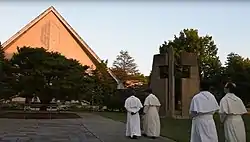 The Abbey Church was completed in the years during Second Vatican Council. It reflects the Liturgical Movement and the reforms of the council, as interpreted with the norms of Catholic tradition in mind. The Abbey Church is built in the basilica style, with a well appointed nave and a wide choir.